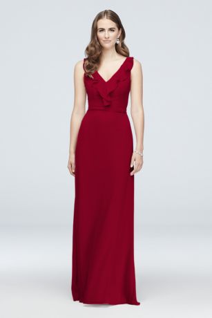 Ruffled Tank Crinkle Chiffon Bridesmaid Dress A ruffled V-neck adds a pretty detail to this flowing crinkle chiffon bridesmaid dress. Ruffled Tank Crinkle Chiffon Bridesmaid Dress Davids Bridal. Fully lined Hand wash Imported.