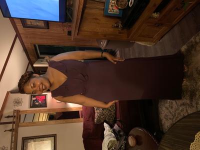 A ruffled V-neck adds a pretty detail to this flowing crinkle chiffon bridesmaid dress. A ruffled V-neck adds a pretty detail to this flowing crinkle chiffon bridesmaid dressPolyesterBack zipper.